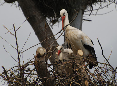 En la localidad de Villaescusa esta pareja de Cigüeña blanca estaba muy atareada dándole los últimos retoques a su nido...